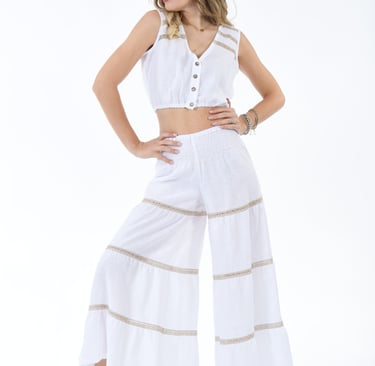 Il risultato è un outfit in lino donna elegante ma rilassato, ideale per passeggiate sul lungomare o cene vista mare.